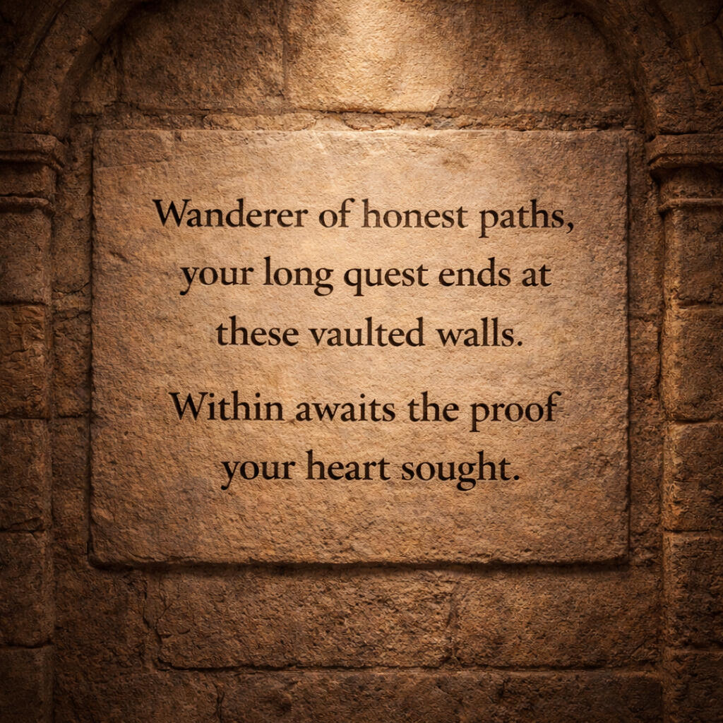 From the first silence of the Dome, two scriptures were taken: the Geometry of Truth, drawn from the laws that hold a life upright, and the Architecture of Deception, taken from the fractures that bend it. Together they form the map of what stands and what distorts. The path to these scriptures begins below.